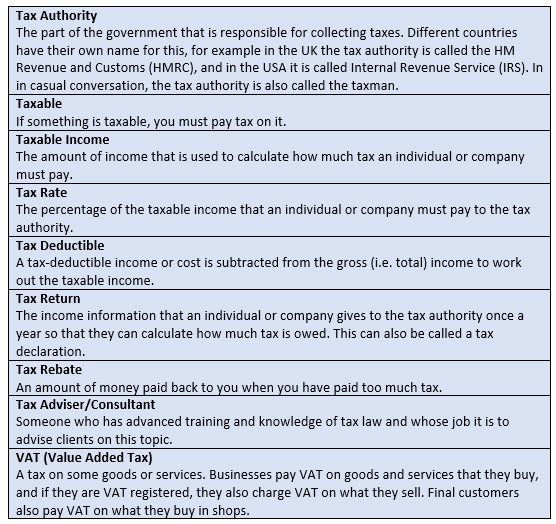 Almost everyone has to deal with tax at one point or another, either in their work or private life. Tax is always difficult but knowing the key terminology for it can make life easier if you ever have to handle tax topics in English.